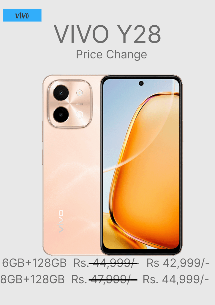 The Vivo Y28 (6/128GB) is currently available for Rs 42,999 in Pakistan, down from its previous price of Rs 45,000. The model with 8/128GB storage is now priced at Rs 44,999, reduced from its initial price of Rs 48,000.