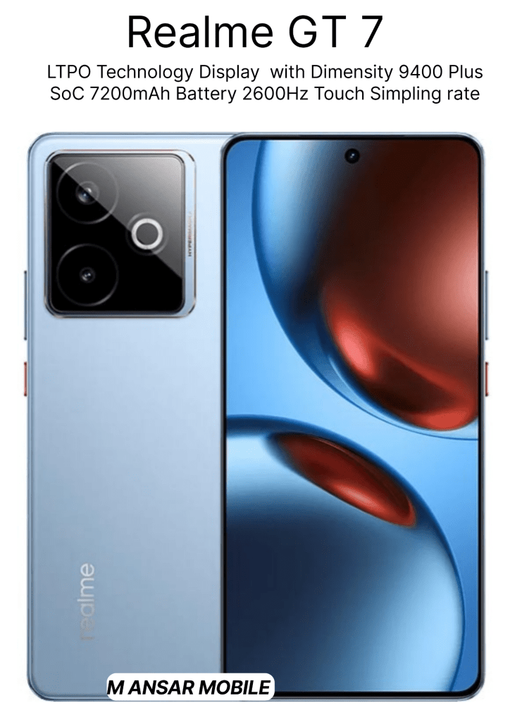 The regular GT 7 is somewhat more compact than the Pro and measures 8.25mm in thickness, yet it features a larger battery. It also holds the same IP69 rating, although its camera specifications are somewhat reduced. This model is equipped with dual rear cameras (50MP + 8MP ultrawide), while the front camera boasts a 16MP sensor for selfies.